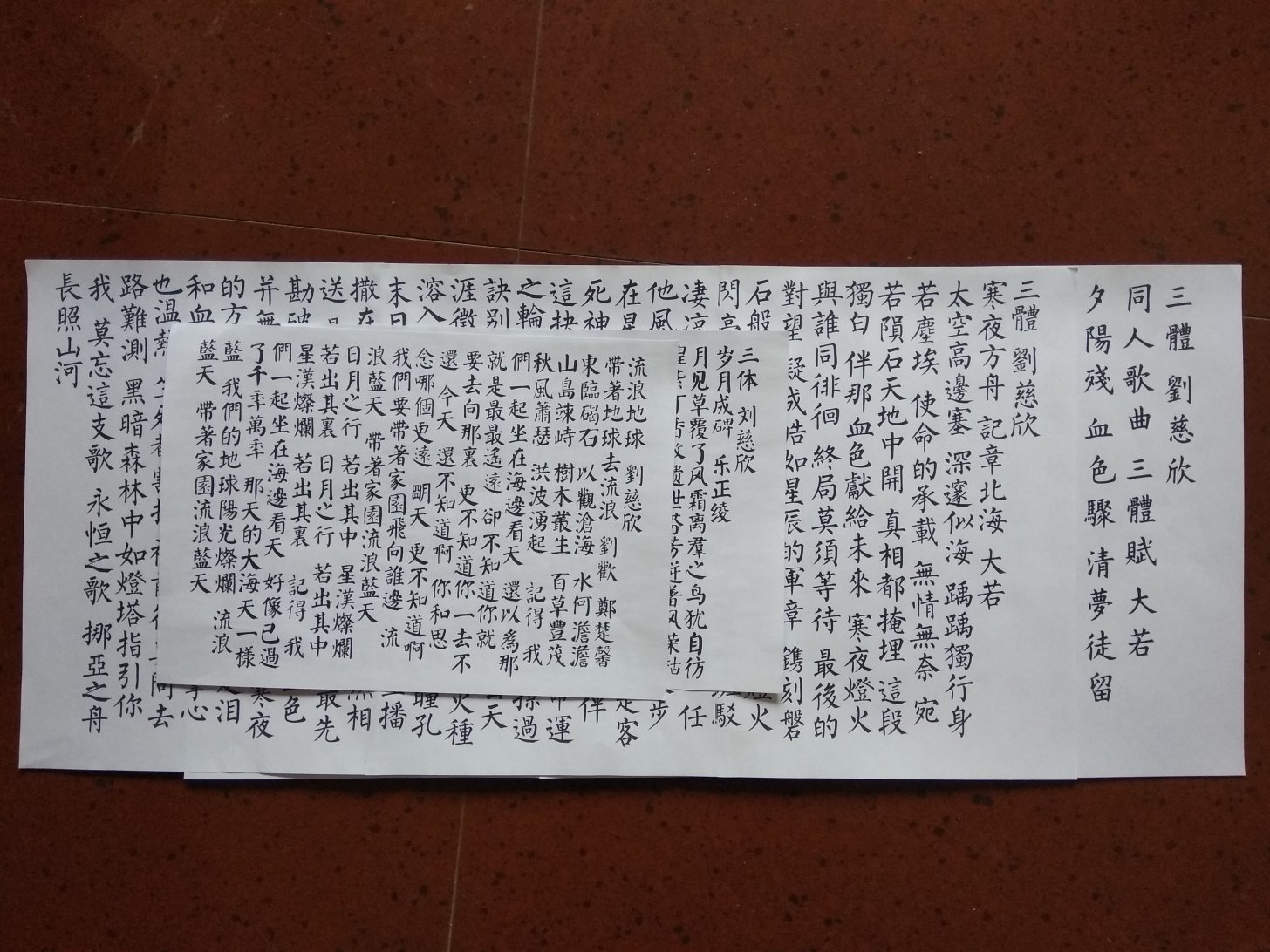 选择2、(见图3、4)总价值160元的定制毛笔字帖(流浪地球、三体)笔墨纸砚小礼物一份,包含2只小楷毛笔(兼毫+狼毫)、定制A4字帖2套(每套2张)、定制A4*3拼贴字帖2套(每套2张)、其他纸墨砚、书法毛毡。定制毛笔套装价值80元(15*2+5*2+15*2+10),远超130元还包邮!